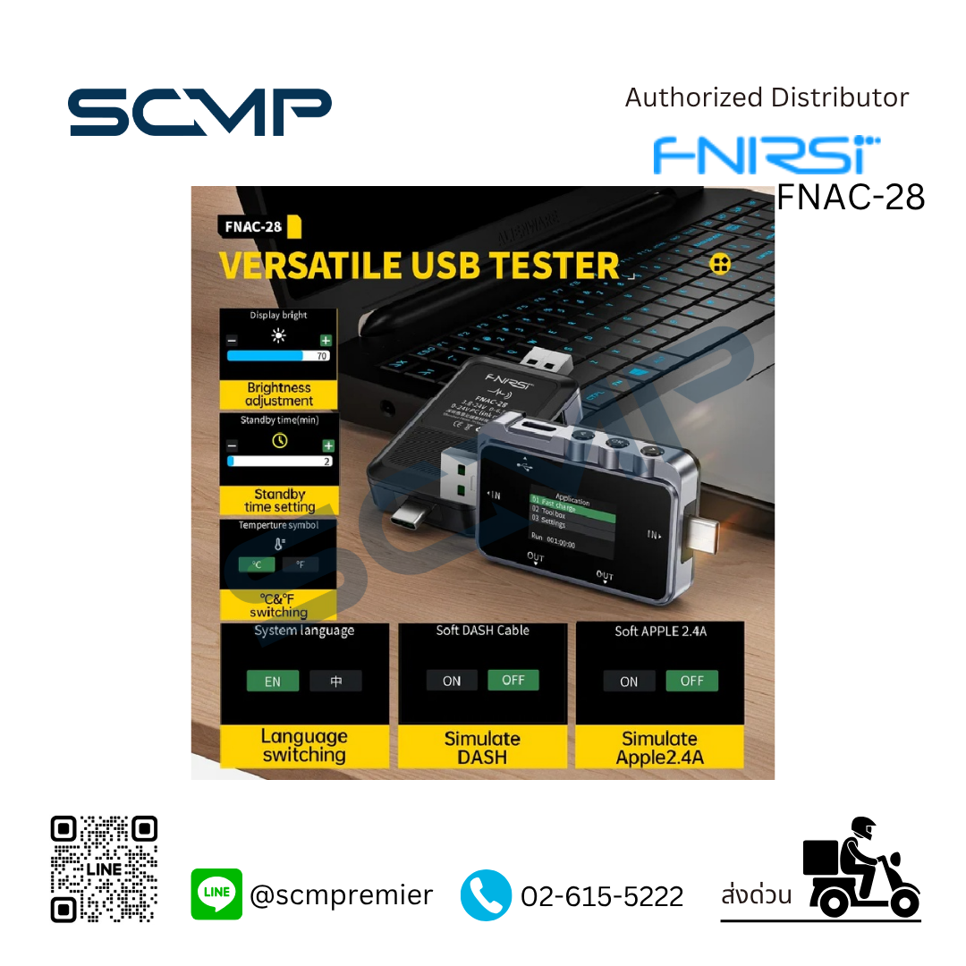 เครื่องทดสอบพอร์ต USB/ดิจิตอล FNIRSI FNAC-28, 156W, QC3.0